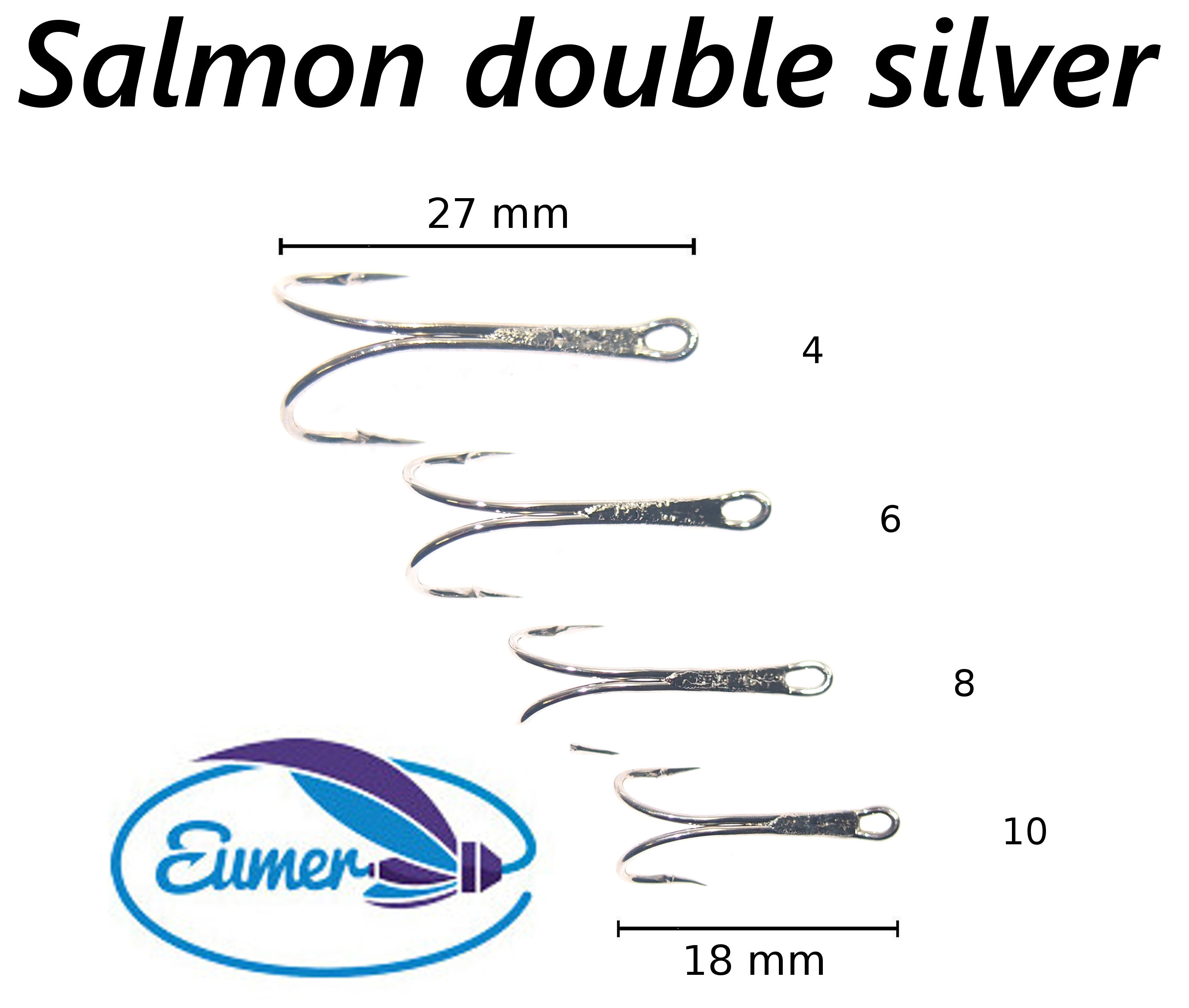 The Eumer salmon hook is a durable two-pronged salmon hook. The hook is made listening to the wishes of salmon fishermen. Colours: black, silver and gold