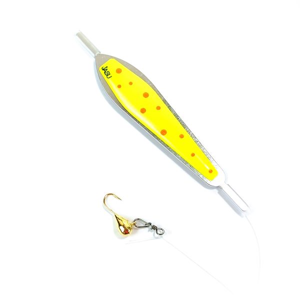 Perus means basic so this kit is a very basic ice fishing kit that you can use basically for all fish species that you can ice fish. We wanted to make it easier for you to buy ice fishing equipment so we made these kits that include everything you need for ice fishing after you have made a fishing hole in the ice. This set is the one you should get if you can get only one. And because so many people have been asking what kind of knot should they use and how to tie the correct one, we made them already for you. The reel is lockable and is released by pressing the lever. With this kit you can really start fishing as soon as you have drilled that fishing hole.