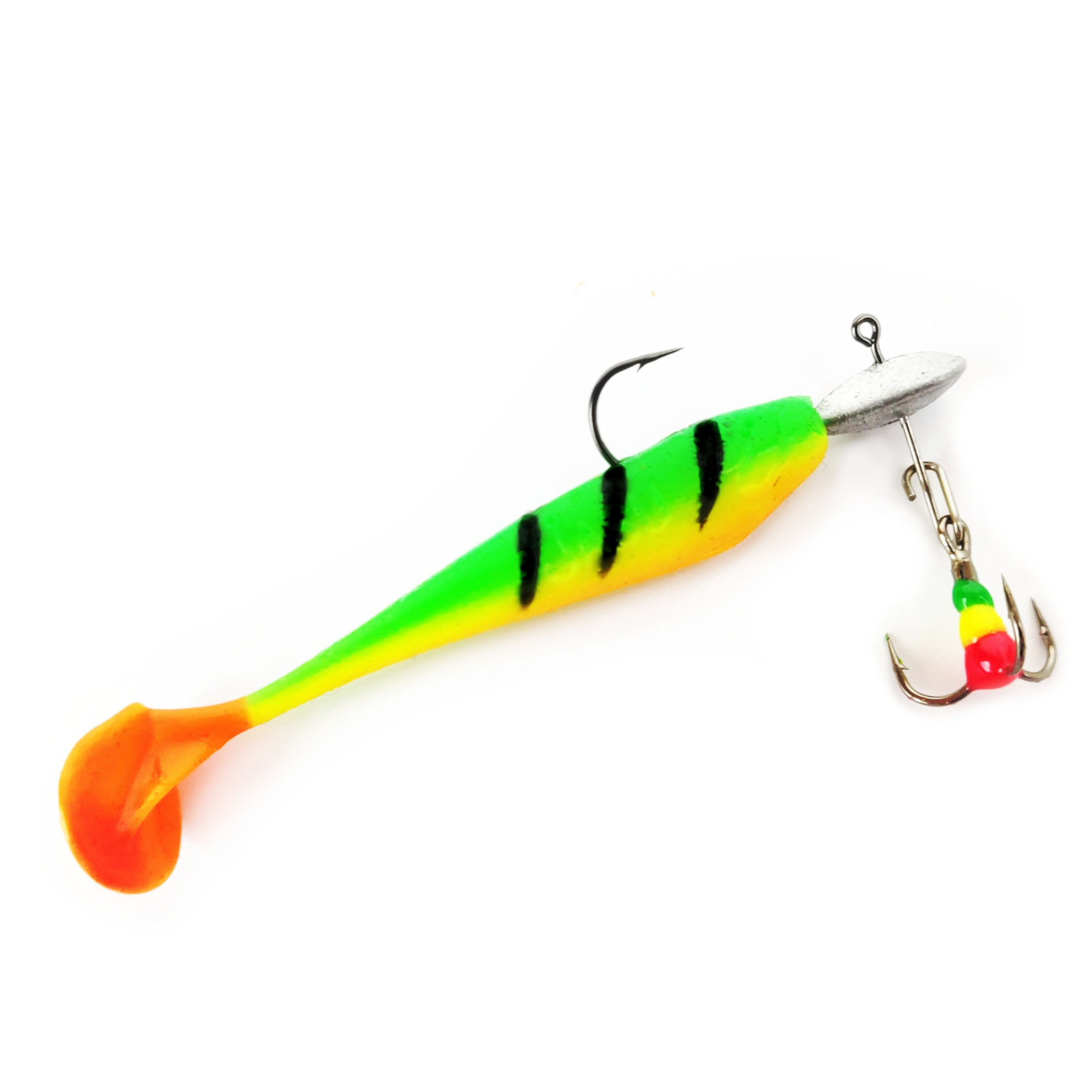 Louhi Ice Fishing Jig is very effective for ice fishing for every fish that eats small baitfish. They include jig head, jig that imitates a fleeing small baitfish and colour hook. Soft material and tail with very strong swimming action makes jigs body vibrate attractively even when it's swimming very slowly. By jerking the ice fish rod the jig will swim like a fleeing baitfish. Sometimes you should only vibrate the rod slightly or keep jig still. You should vary the fishing depth and technique for best results. Especially effective for perch, zander, rainbow trout, grayling and whitefish.