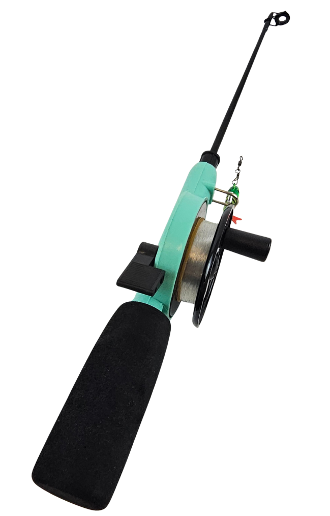 Basic ice set for perch fishing. The set has a sturdy fiberglass rod, which you can use to swim the ice effectively and hook the fish easily. The reel is lockable and is released by pressing the lever. Confused about tying the knot? No worries, our sets are ready for fishing. We have tied a quick lock on the end of the 0,22 mm line and a 3 cm Puru jig has already been attached to it, which has proven to be an effective bait when fishing.