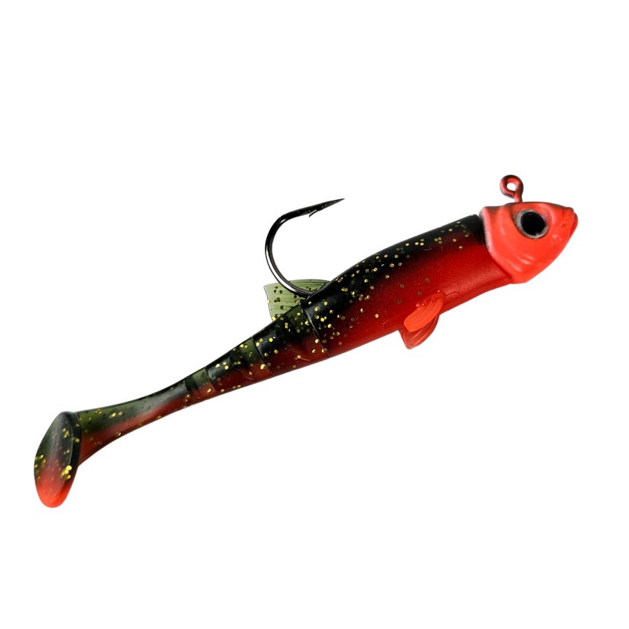 7cm Venes is an effective jig that looks like a real small fish for perch, zander and other predatory fish. The jig works in all waters all year round and is at its best in summer in jig fishing. The jig package contains 4 jigs and one Suvas jig head in the shape of a small fish head weighing 5g. The grooved body and spade tail guarantee an efficient swimming motion. The jig head's eyes complete this piece of art. The barb on the hook keeps the jig well in place. The Venes jig also works with a traditional round jighead or in dropshot jigging just strung on the hook.