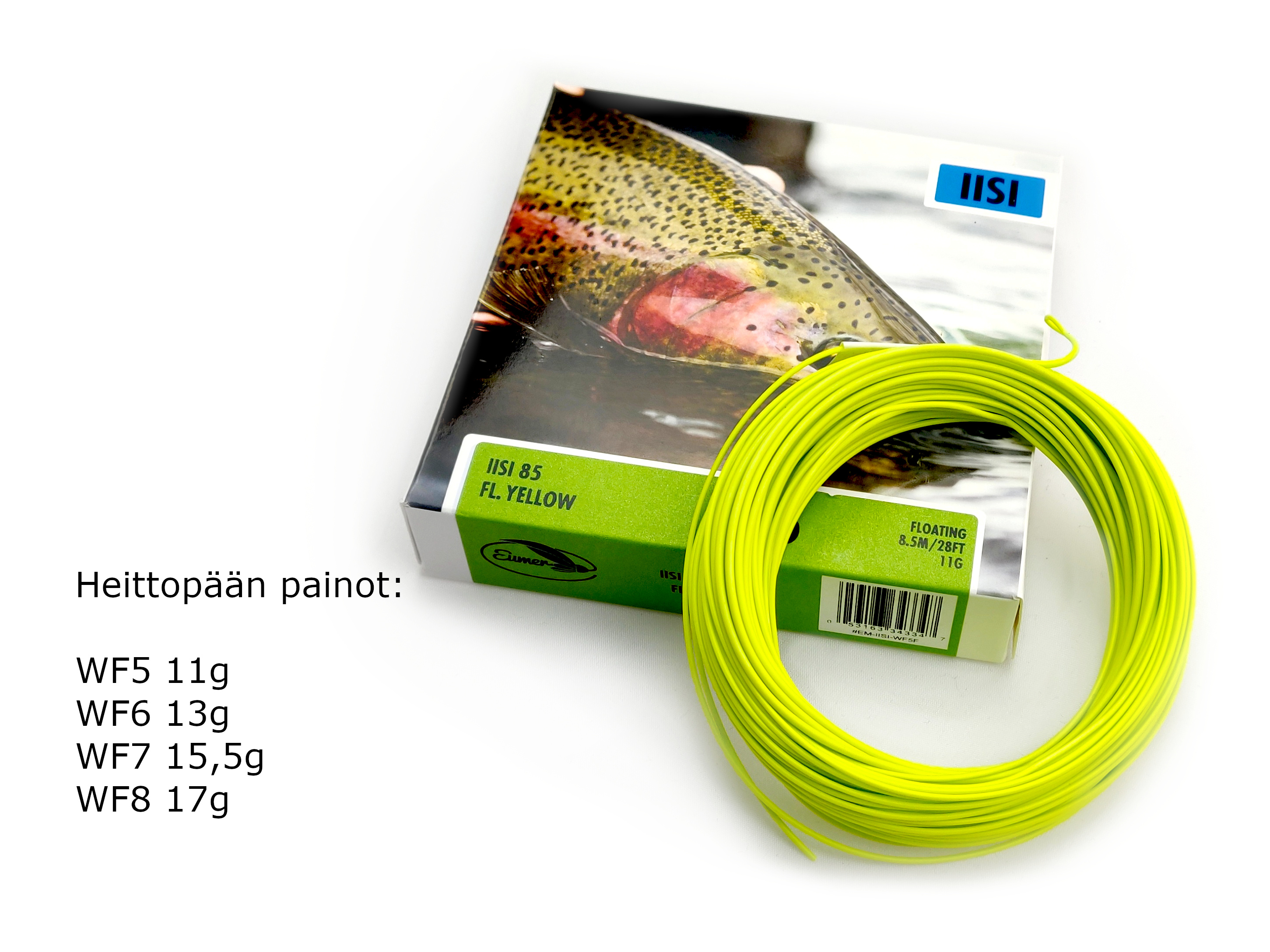Perhosiima on onnistuneen perhonheiton tärkein osa. Kalliillakaan perhovavalla ei pysty heittämään perhoa, jos perhosiima ei ole vapaan sopiva. Helppoheittoinen Eumer Iisi WF -perhosiima on tehty alaheittoon ja takaheittoon joelle ja järvelle. Voit helposti kalastaa niin streamereilla kuin pintaperhoillakin. Perhosiiman etupäässä on siimalenkki kartioperukkeen kiinnittämistä varten. Perhosiiman painotetun etukartion pituus on 8,5 m ja kokonaispituus juoksusiiman kanssa on 25 m. Perhosiima on yksivärinen, mutta voit heittoharjoitusten aluksi tehdä tussilla merkin etukartion ja juoksusiiman väliin. Heittoa tehdessä vain painotettu heittopää on vavankärjen ulkopuolella. Juoksusiima on liian kevyt heittämiseen. Jos haluat tehdä pidempiä heittoja kuin 8,5 metriä, sinun tulee ottaa kelalta ylimääräistä siimaa ja lukita se sormella heiton ajaksi. Heiton lopussa ylimääräinen juoksusiima vapautetaan ja painava heittopää kuljettaa juoksusiiman mukanaan. Sopiva perhosiima on samaa painoluokkaa tai yhtä isompi kuin vapasi. Isommalla painoluokalla helpotat isompienkin perhojen heittoa sekä ylipäätään heittoja aloittaessasi harjoittelun.