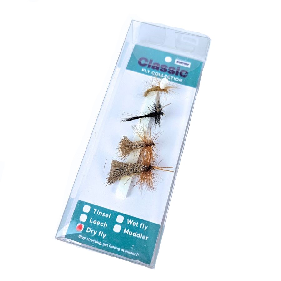 Classic Pintaperholajitelma sisältää 4 erilaista pintaperhoa. Nämä perhot toimivat tehokkaasti kirjolohen, taimenen ja harjuksen kalastuksessa. Eumerin Classic perhot ovat tunnettuja laadustaan, eivätkä ne purkaudu käsiin kovassakaan käytössä.