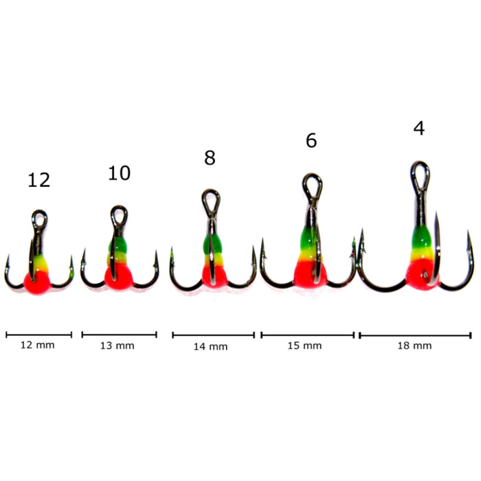 Erittäin terävä ja kestävä kolmihaarainen värikoukku tasapainopilkkiin, pystypilkkiin tai vaikkapa jigin alle. Värikoukun ajatus on lisätä vieheeseen ylimääräinen iskupiste sekä tehostaa kalan tartuttavuutta.