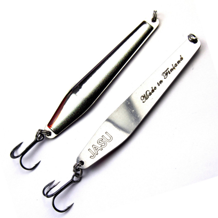 9 cm Jasu Jalo lusikkauistin on tehokas yleisviehe erityisesti ahvenen, hauen, kuhan ja jalokalojen heittokalastukseen merellä ja järvellä sekä virtavesien rauhallisissa suvannoissa. Viehe on pitkäheittoinen ja se vajoaa hitaasti väristen, kuulutellen kajoja kauempaakin lähettyville. Jasu Jalo on valmistettu Satakunnassa. Lusikkauistimien pinnoituksessa ja värjäyksessä on käytetty uutta 3D-teknologiaa. Vieheen kiiltävä ja koholla oleva pinta ei halkea, vaikka viehe osuisi kiviin ja lusikan uintia voi säätää runkoa taivuttamalla pelkäämättä, että lakka halkeilee. Vieheen runko ja uistinrenkaat on valmistettu ruostumattomasta teräksestä. Jalolla voi kalastaa ahventa, haukea ja kuhaa tehokkaasti lusikointitekniikalla, joka on seuraava: 1. Heitä uistin kohteeseen 2. Anna lusikan vajota lähelle pohjaa 3. Kelaa 3-4 nopeaa kelausta, jolloin lusikka pomppaa irti pohjasta 4. Odota ja anna vieheen hitaasti väristä pohjaan. Tämä on usein se hetki kun kala käy kiinni vieheeseen. Katso kalastustekniikat oheiselta videolta!