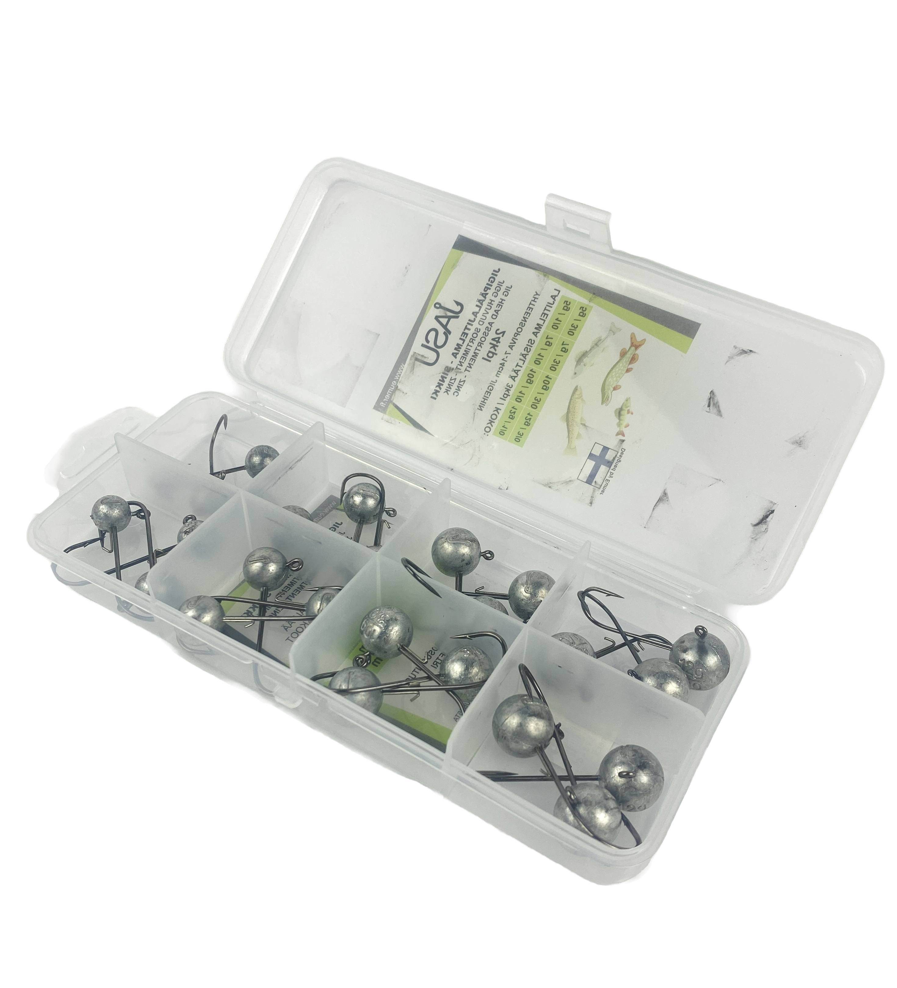 Jigipäälajitelma sisältää kaikki kuhan kalastuksessa käytetyt yleisimmät sinkkiset jigipäät helposti yhdessä rasiassa! Lajitelma sisältää 24 kpl painoja, 3 kpl/koko