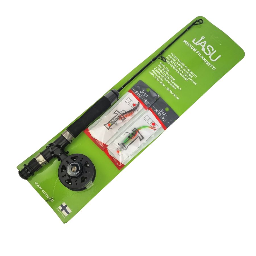 Valmis setti kuhan jigipilkintään! Ei tarvitse muuta kuin kiinnittää jigipilkki pikalukkoon ja olet valmiina saamaan mahtavia kokemuksia sekä mahdollisesti upeita saaliita!! Pilkkijigiä uitetaan aktiivisesti vavan kärjen nypyillä, mutta toisinaan rauhallinen väristely ja paikallaan pito ovat tehokkain tapa saada kala koukkuun. Kannattaa vaihtaa tekniikkaa ja kalastussyvyyttä usein parhaan lopputuloksen saamiseksi. Muista myös, että tämän setin kanssa voit käyttää myös muita pilkkejä / vieheitä - löydä ne täältä!!