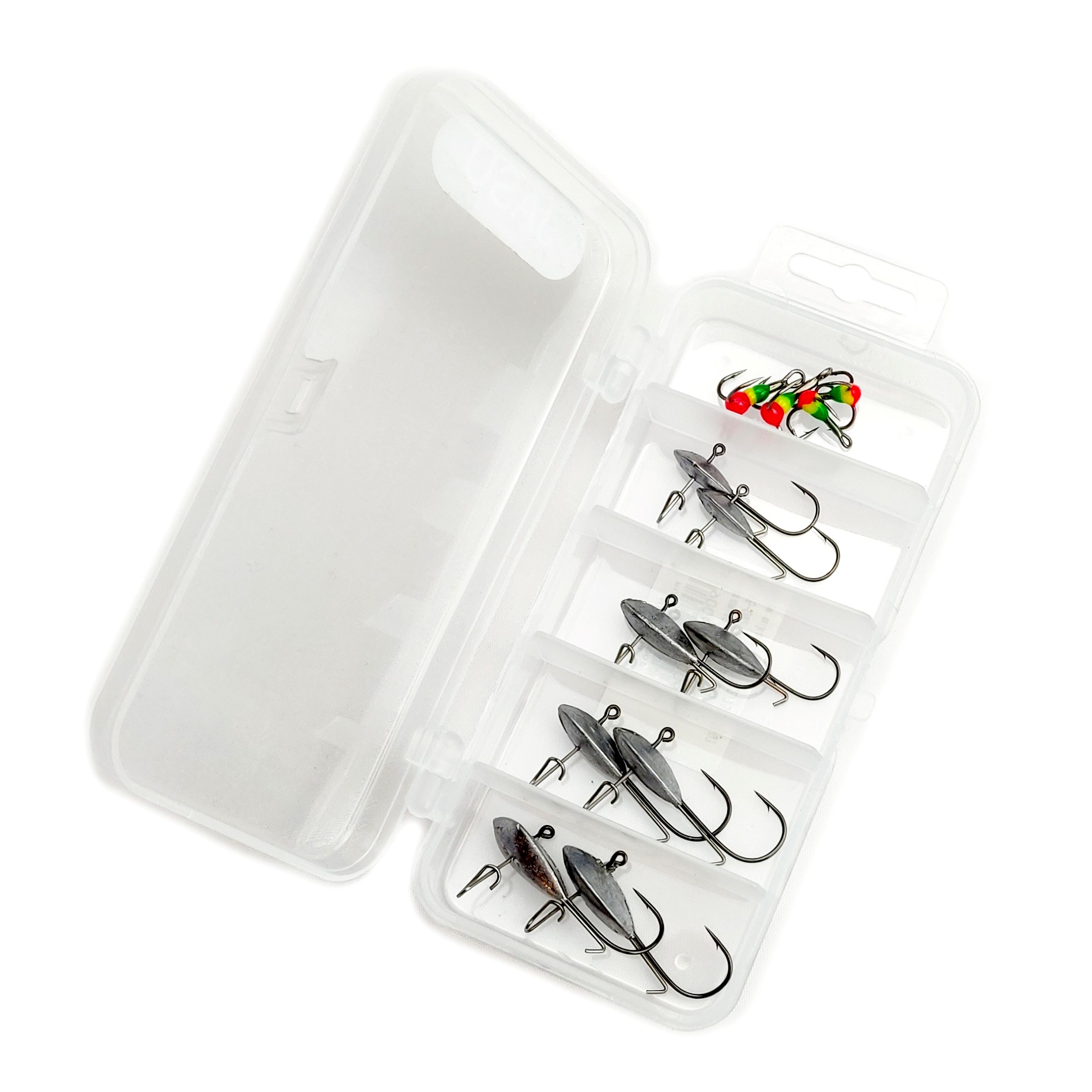 Helppoutta pilkkijäille! Kaikki pilkkijigipäät ja värikoukut samassa rasiassa! Jasu pilkkijigipää on suunniteltu ahvenen, kuhan ja jalokalojen pilkintään. Lajitelma sisältää 4 erikokoista/painoista pilkkijigipäätä, kutakin 2 kpl. Lisäksi lajitelmaan on laitettu 2 erikokoista papukaijan värityksellisellä iskupisteellä varustettua kolmihaarakoukkua molempia 2 kpl. Mukana tulee kätevä säilytysrasia, jossa tuotteet pysyvät nätisti talven pilkkireissuilla. Valmis paketti, jotta sinulle jäisi vain se tärkein - pilkkiminen. Jigin pituus / koukun koko: 4 - 6 cm / #4 (ahven) 6 - 8 cm / # 1 (ahven/kuha/Jalokala) 9 - 14 cm / #3/0 (Kuha/Jalokala)