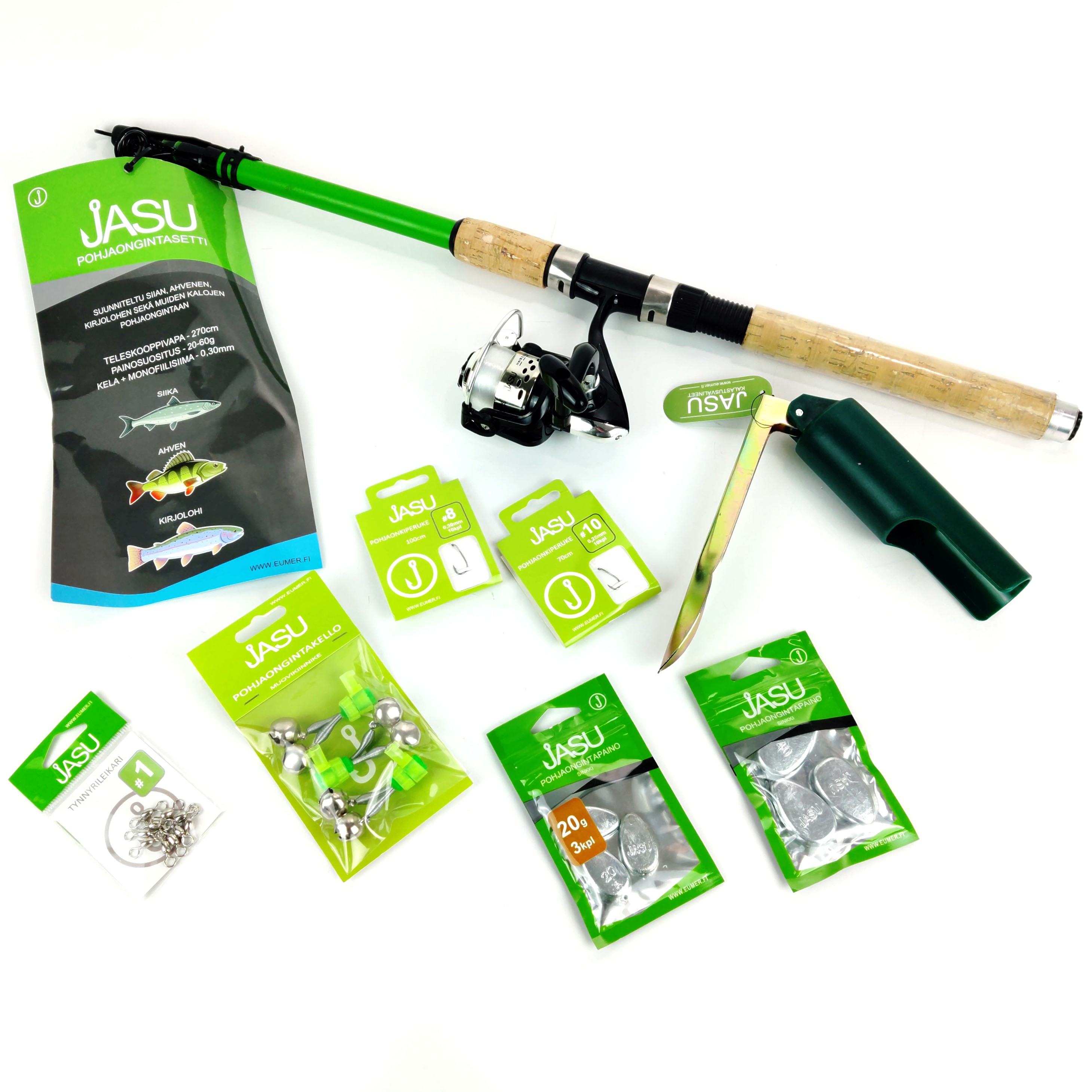 Tässä on aivan kaikki, mitä tarvitset aloittaaksesi hermoja lepuuttavan ja stressitasoja laskevan pohjaonginnan alias lepokalastuksen. Meistä jokainen kaipaa joskus niitä kiireettömiä hetkiä elämässään, jolloin voit vain olla ja nauttia juuri siitä, mitä ympärilläsi sillä hetkellä on. Aika hienoa, jos tällaisen hetken sivutuotteena onnistut saamaan vielä saaliiksi ainekset maittavaan ja terveelliseen ateriaan, lähiruokaa parhaimmillaan. Onkea pitelee puolestasi maahan työnnettävä onkivapateline ja saaliista ilmoittaa heleästi kilahtava kello. Tällöin ehdit vielä aivan mainiosti tekemään vastaiskun ja kelaamaan kalan ylös, vaikka lämmin kesäinen aurinko ja luonnon äänet olisivatkin tuudittaneet sinut makoisaan uneen kesken onkimisen. Ei muuta kuin tästä setti ostoskoriin ja olet ottanut askeleen kohti stressittömämpää elämää.