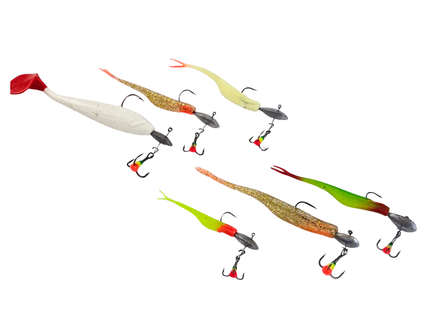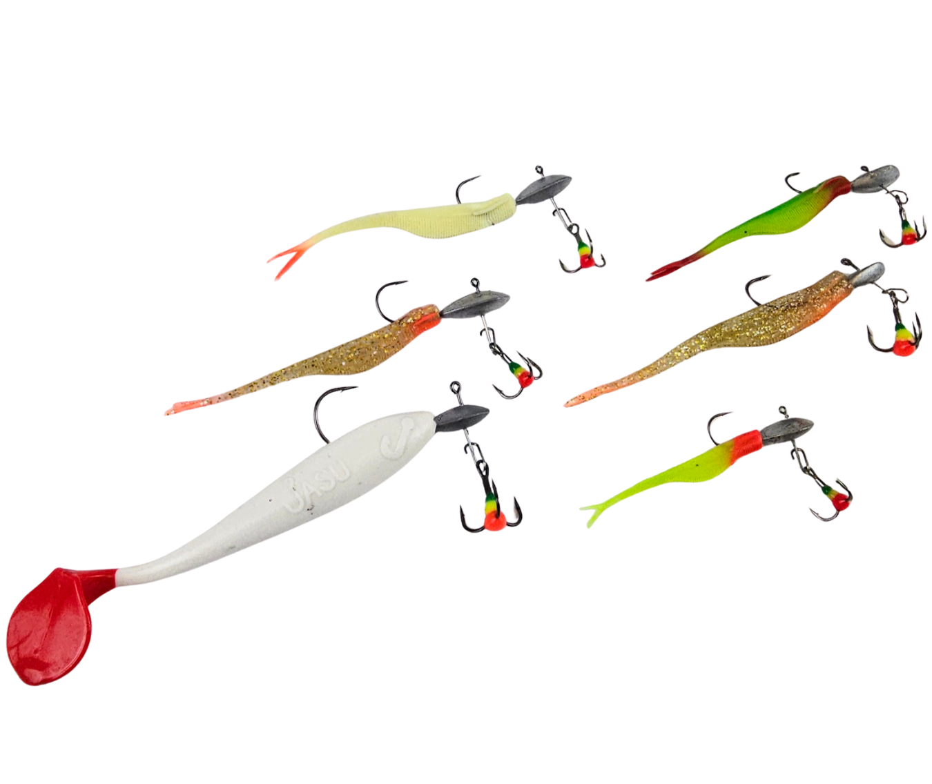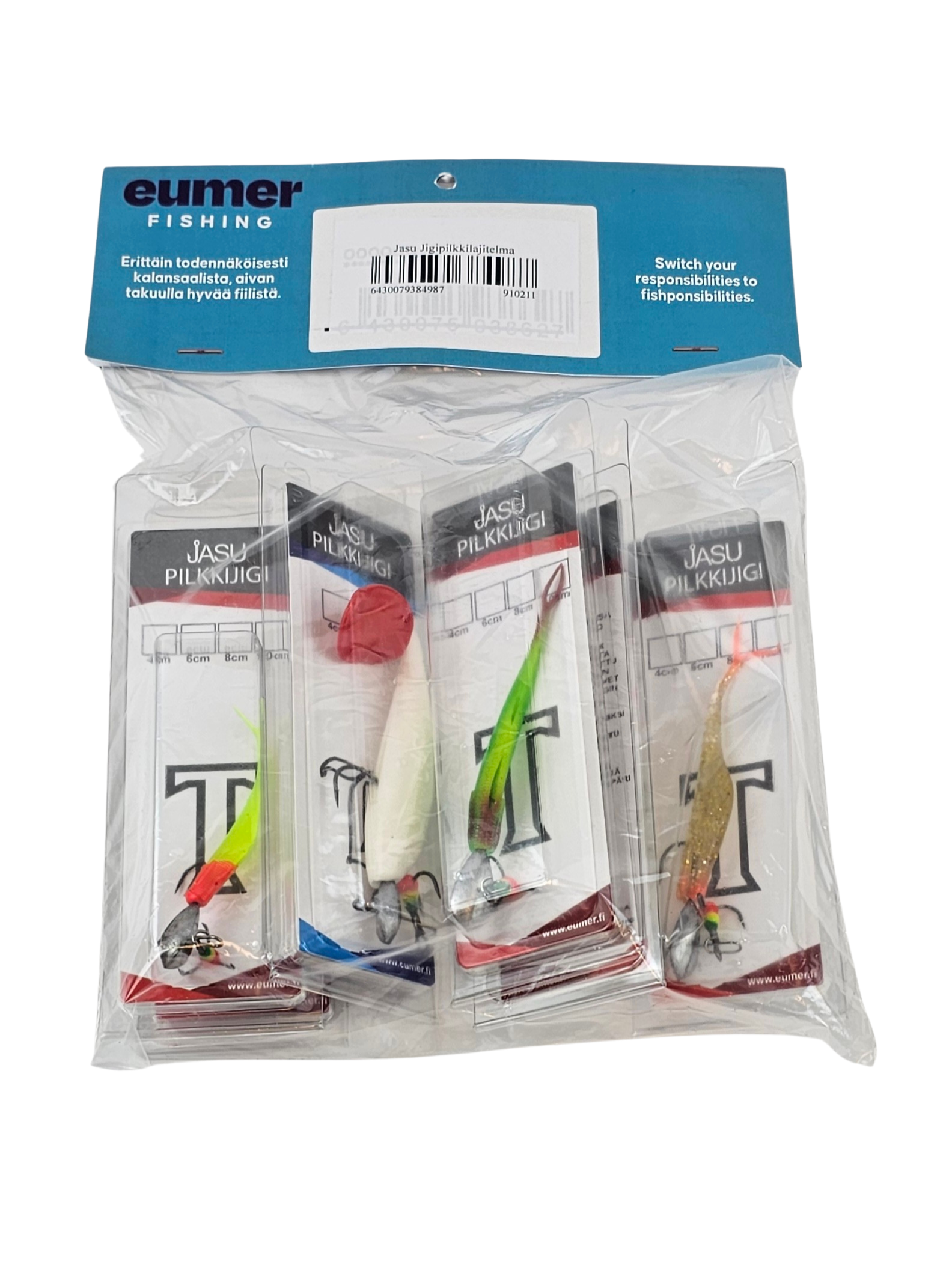 Setet innehåller 6 isjiggar i olika färger, som är redo för fiske. Tiera och Louhi är jiggmodellerna. Jiggar finns i längderna 6, 8 och 10 cm. Här kan du enkelt få isjiggar i form för vinterns isfisketurer. Du bör även prova dessa på sommaren när du åker båt.